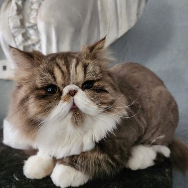 Chloe is a beautiful chocolate tabby and white exotic long hair girl, she has recently been given a haircut. She is a sweetheart, but she takes a little time to warm up to everyone. She is observant first, and then gets involved. She loves to cuddle with my 15 yr old son. She was born april 3rd.